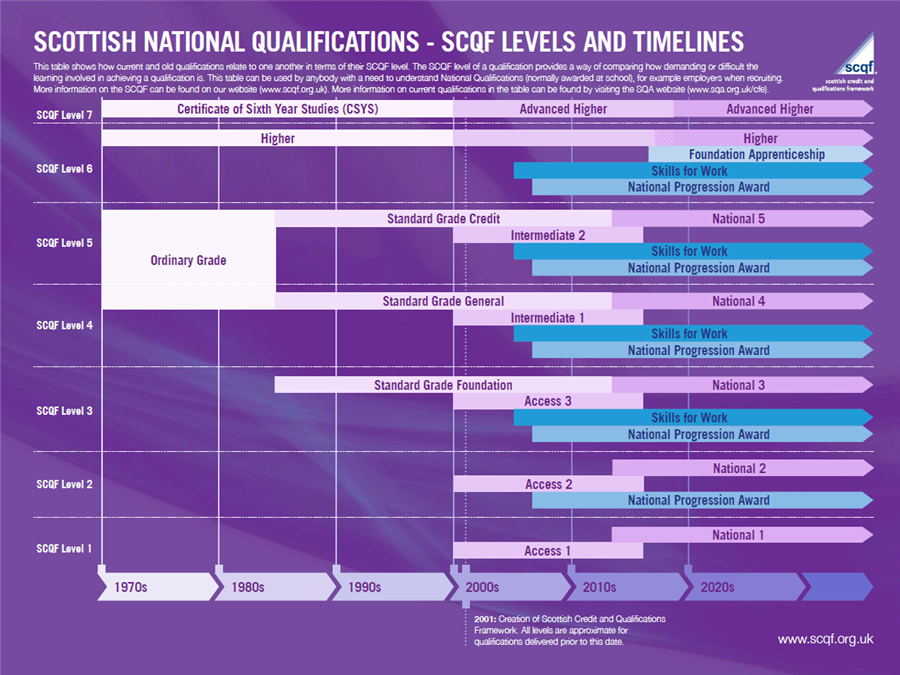 SCQF stands for Scottish Credit and Qualifications Framework. The framework helps young people (and their carers and parents!) as they move through school, college, university and the workplace. As carers and parents, it’s natural to try to relate your child’s school experience to your own, but the Scottish education system has changed a lot since you were at school.